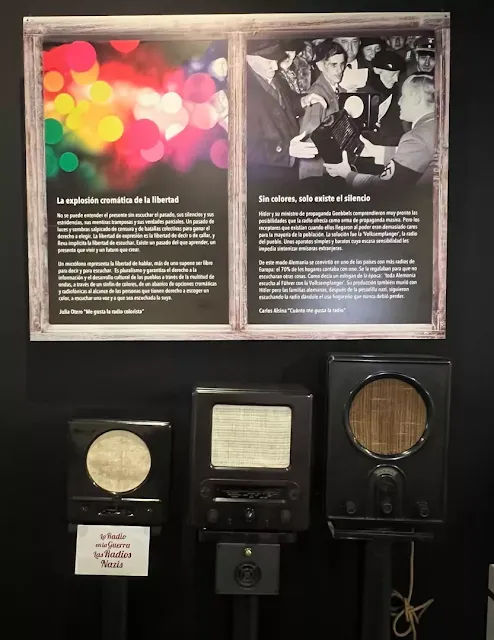 Se compone de varios espacios que recorren la historia de la radio e incorporan sonidos alusivos: la radio de los años 50 y 60; la radio y los niños; la radio y la propaganda Nazi; radio ficción y “La Guerra de los Mundos”; los programas de autor, con homenaje a Jesús Quintero, el “Loco de la Colina”; la radio contemporánea de las grandes noticias; o la radio que mezcla publicidad y humor, con un recuerdo especial a Pepe Domingo Castaño y a uno de los primeros monologuistas de las ondas, Miguel Gila.
